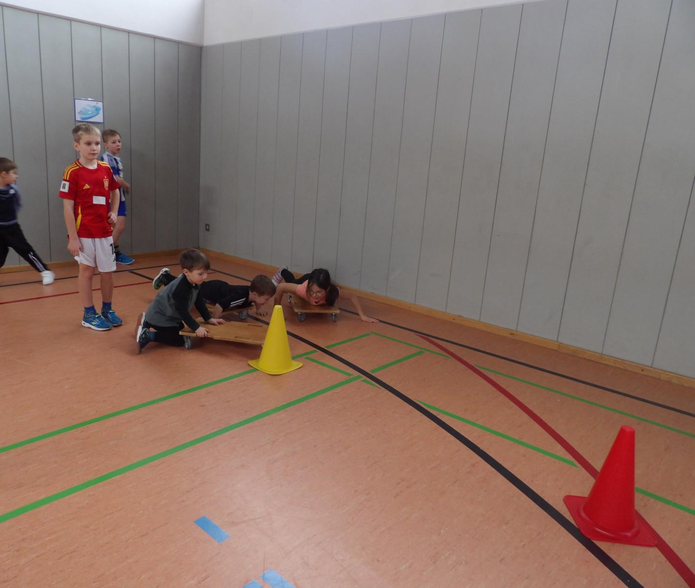 Bereits in der zweiten Schulstunde bauten die Großen sechs verschiedene Stationen auf. Danach brauchten die Jungen und Mädchen dringend ihre Pause und ihr Pausenbrot. „Das war ganz schön anstrengend. Ich komm mir vor, als hätte ich eine Stunde geturnt“, meinte ein Drittklässler.