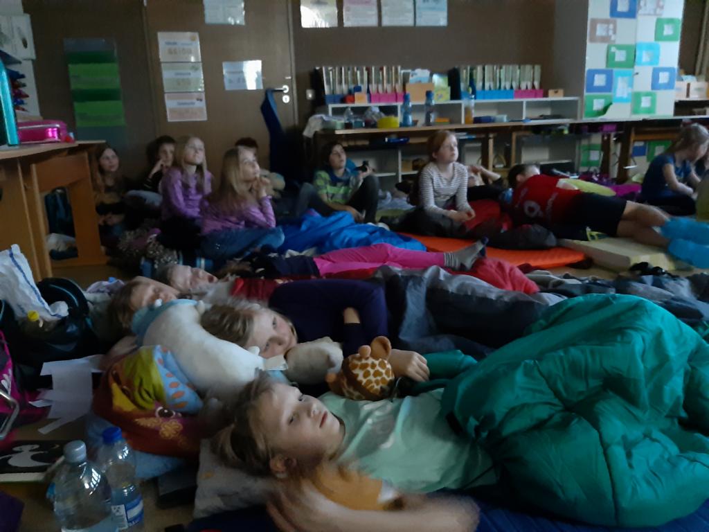Am Donnerstag, den 4.4.2019 trafen sich die Kinder der der beiden Klassen am späten Nachmittag, um gemeinsam in der Schule zu übernachten.